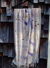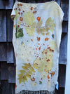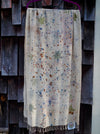 Each shawl was created with plants and colors from my gardens and the woodland around my home. They are made by using plant materials and fabric rolled tightly into a bundle and steamed. Just like an 'I Spy' puzzle, there is something new that you will notice every time you look at them... the edging of a leaf, a petal, a bloom... Each one is a unique treasure.